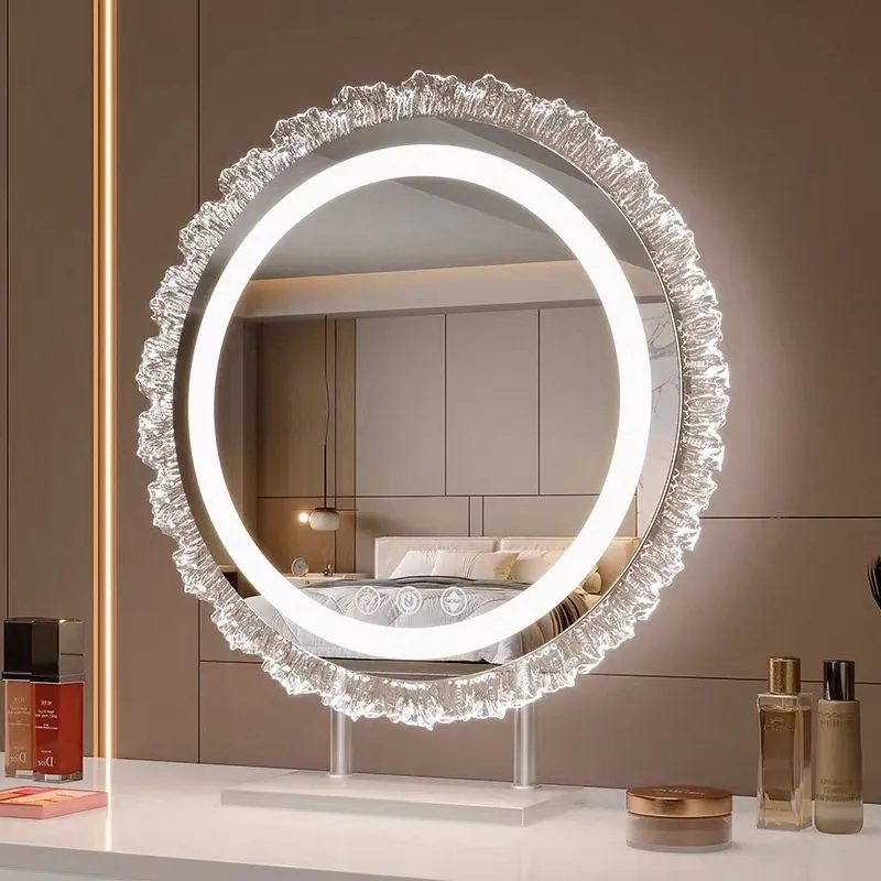Modern Art Deco Acrylic Makeup Mirror with LED Lights Third Mock Examination Stepless Dimming Glass Material