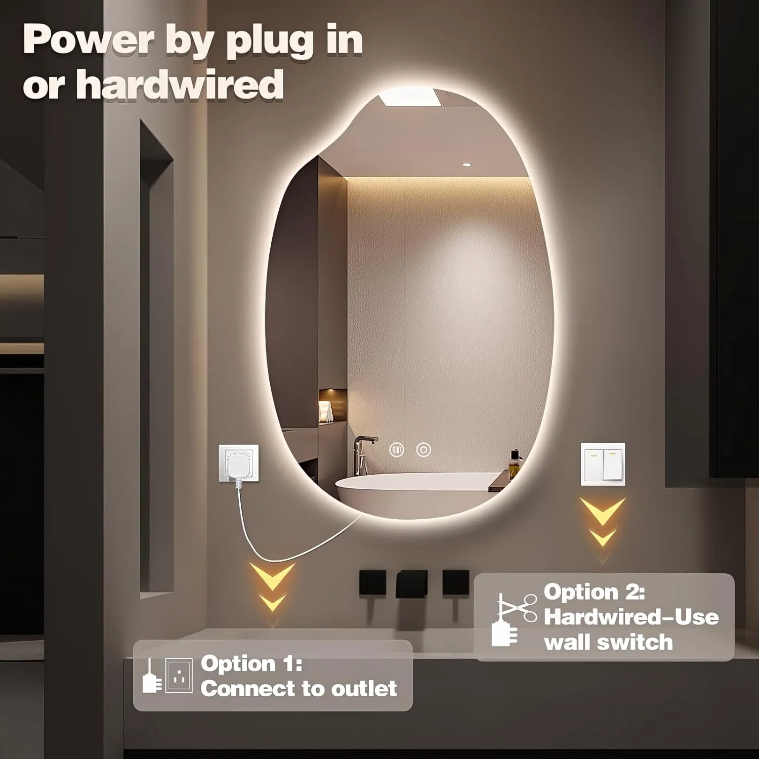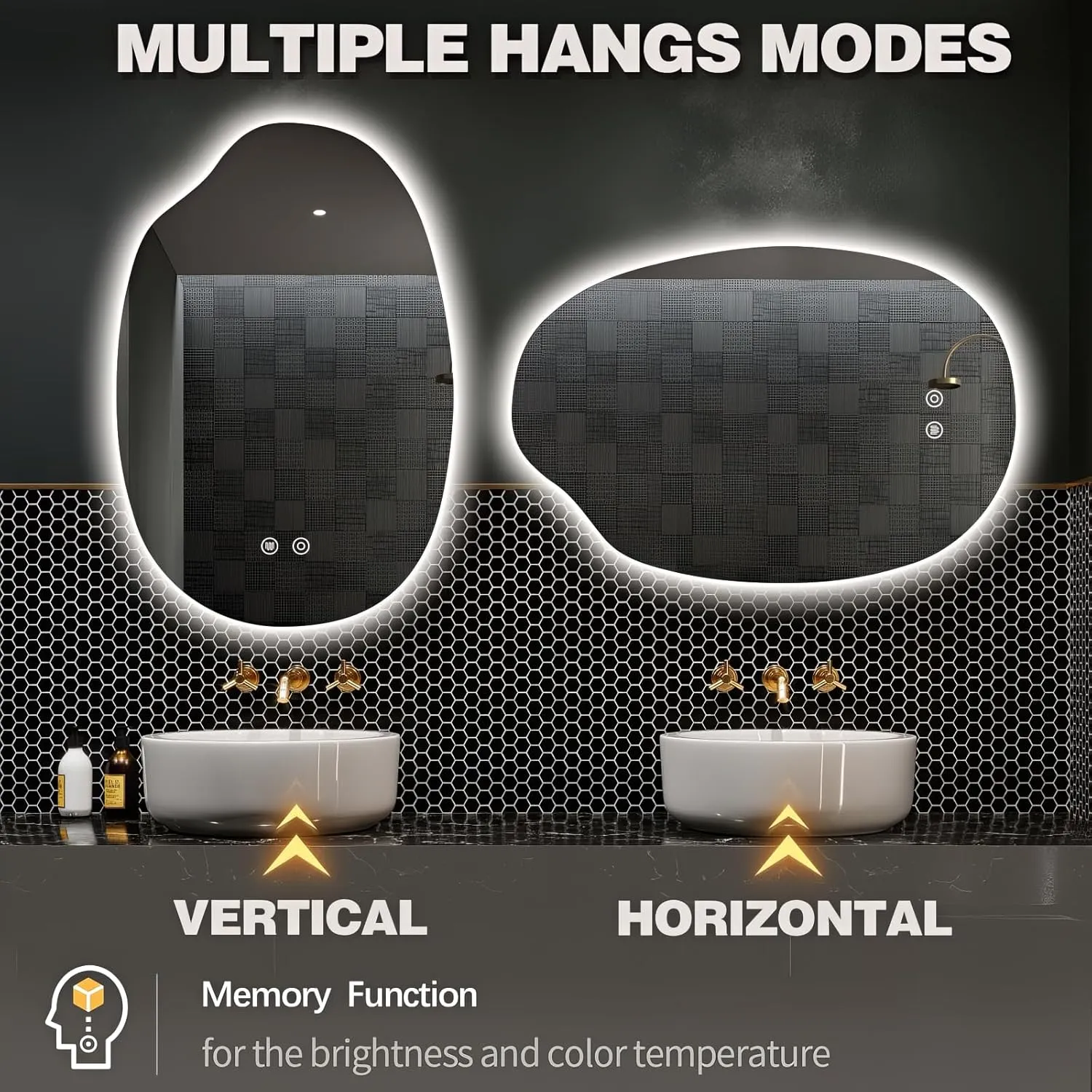 Introducing our innovative Irregular Shaped LED Bathroom Mirror, a perfect blend of modern design and practical functionality, ideal for elevating your bathroom decor.