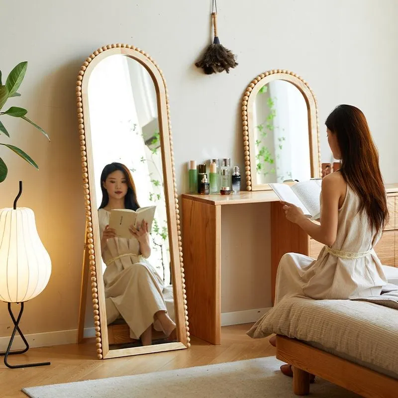 Beaded Arch Wooden Full-Length Mirror for Bedroom