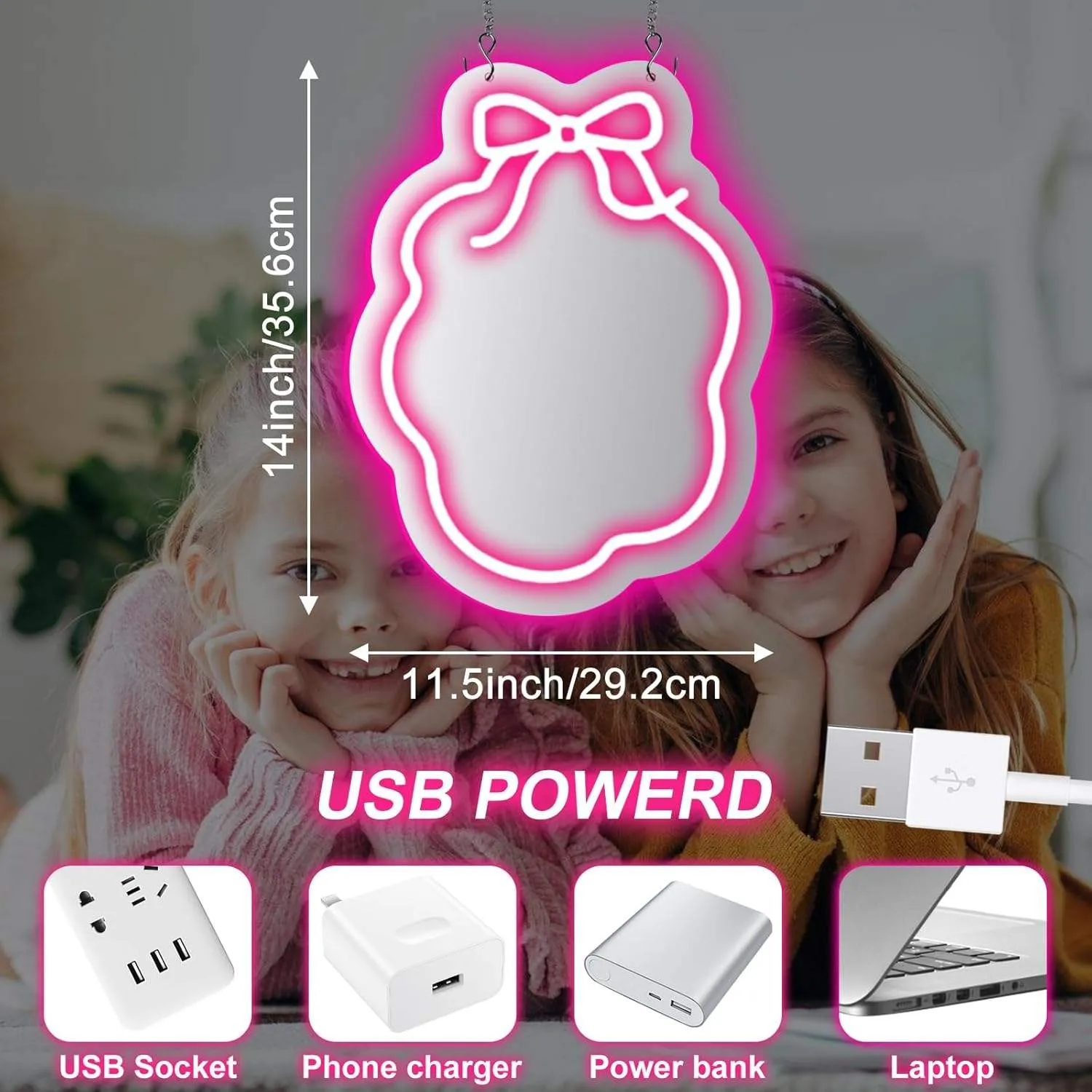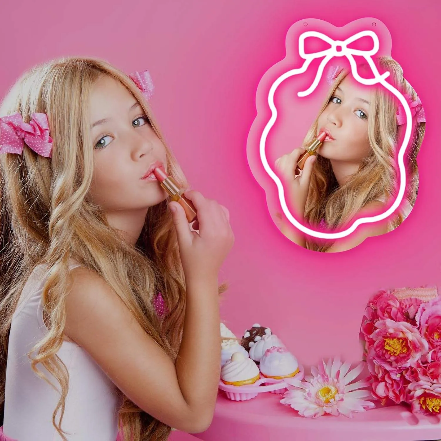 Bow and Flower Neon Mirrors, Bow Neon Light Decorations, Dimmable Neon Mirrors As Gifts for Girls.