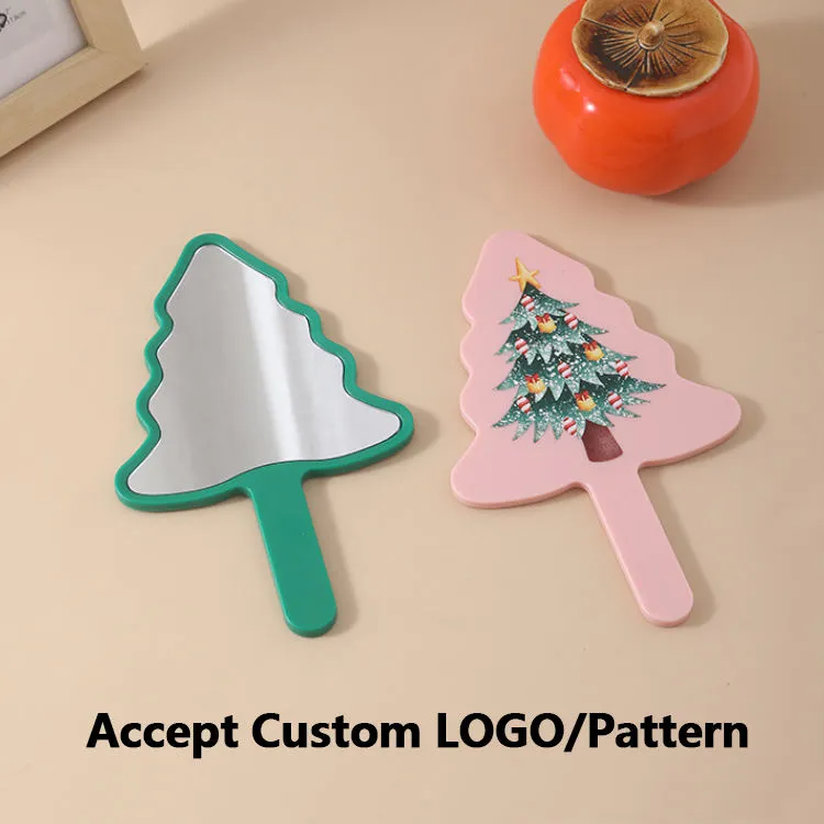 Christmas Tree Shaped Hand Mirror Custom Makeup Beauty Mirror for Gift