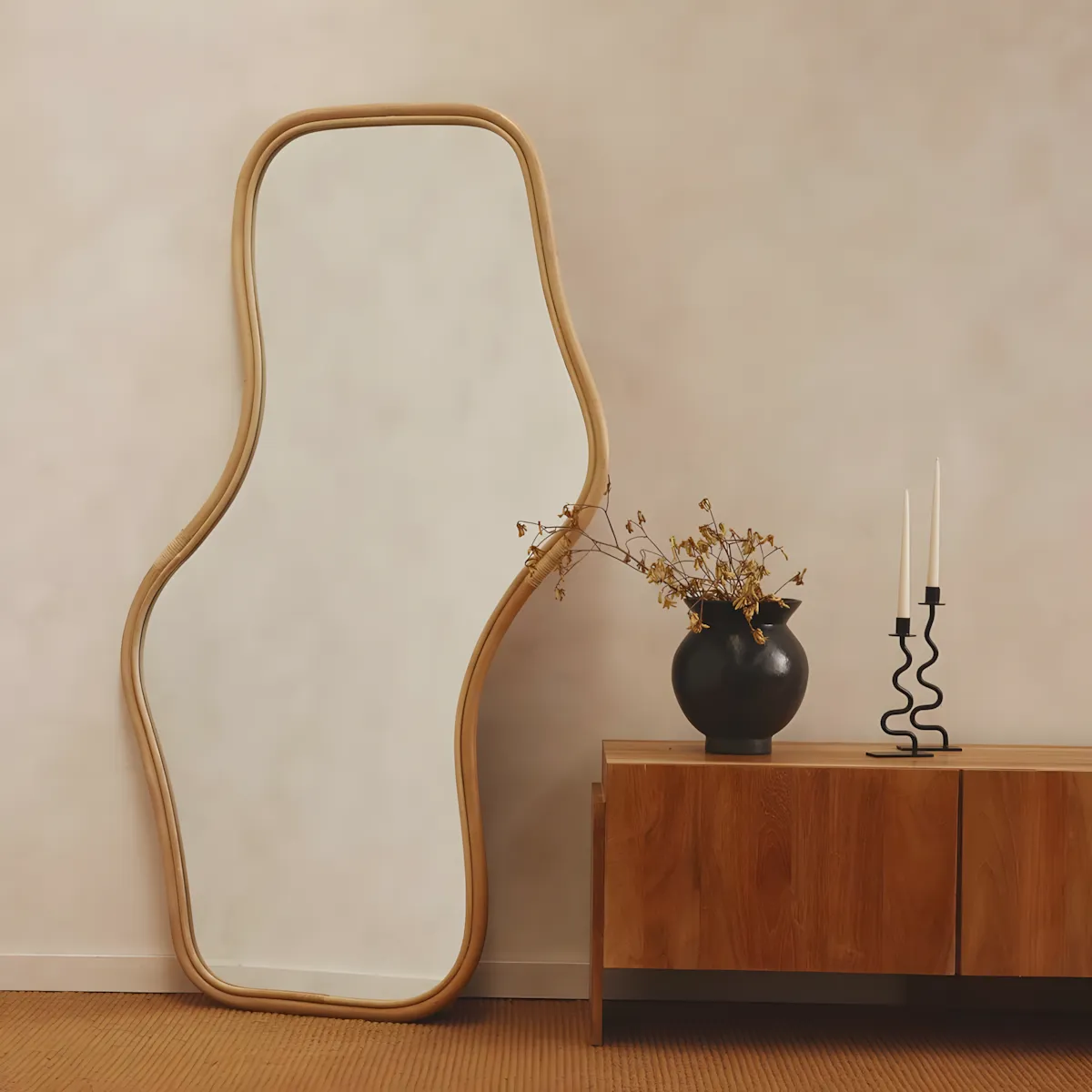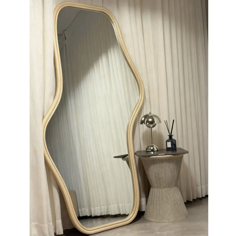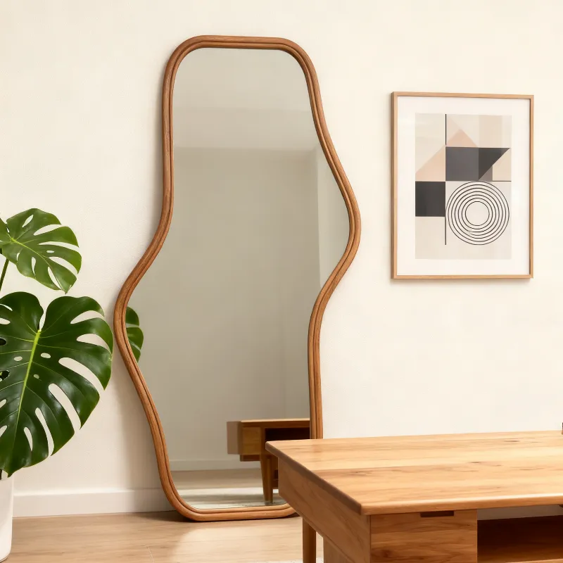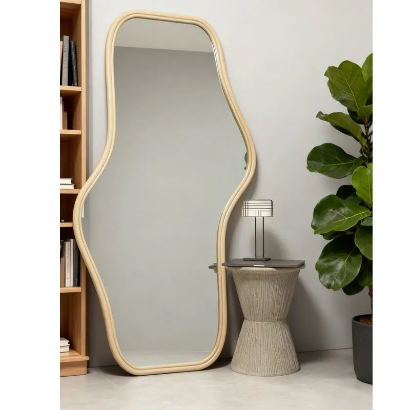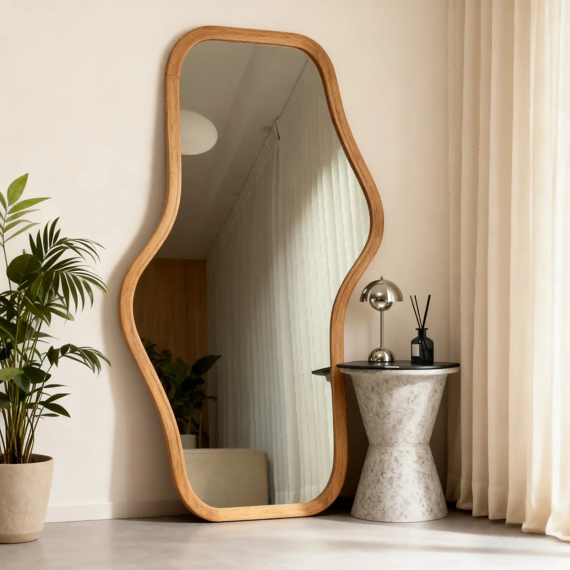 Infuse your space with playful elegance using this full-length mirror, defined by its soft, organic curved silhouette. The lightweight, smooth frame (in neutral tones) complements modern, Scandinavian, or eclectic decor—perfect for bedrooms, entryways, or living areas. Its generous size delivers unobstructed full-body views for daily styling, while the unique shape turns it into a focal decor piece. Beyond functionality, the mirror amplifies light and visual depth, making compact rooms feel airier. Sturdy yet stylish, it balances whimsy with utility, ideal for adding personality to any interior.