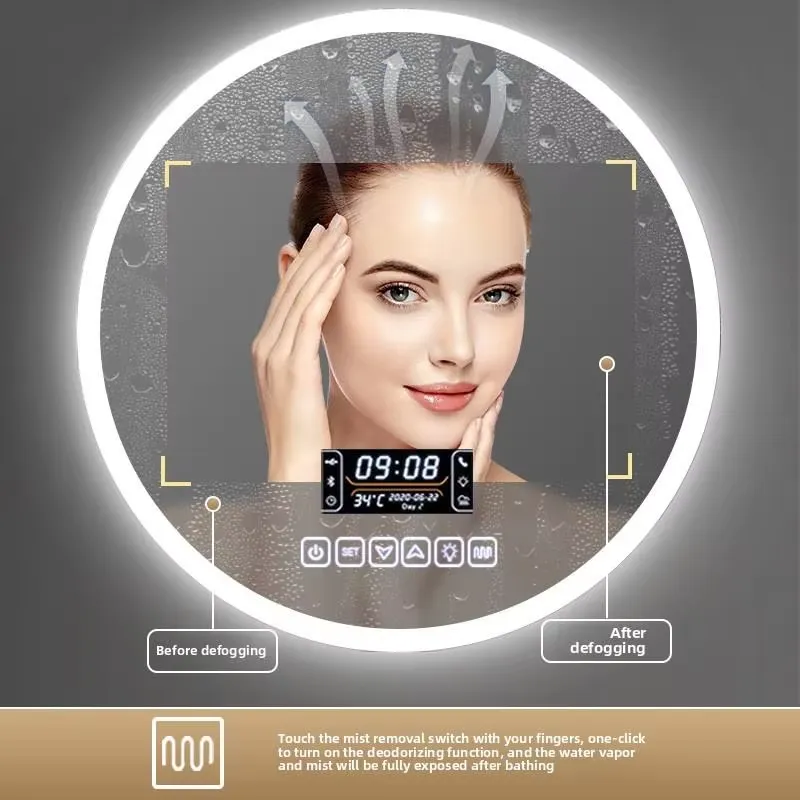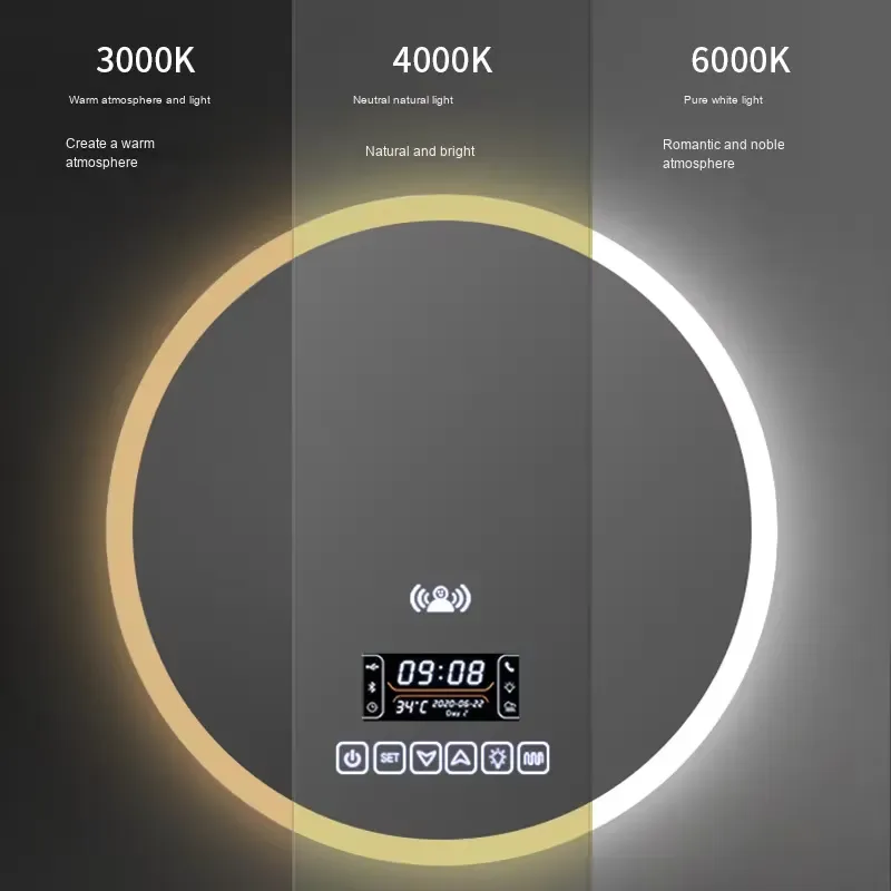 Factory Direct Smart LED Bathroom Mirror Metal Framed Circular Art Deco Design for Hotels Villas Hospitals