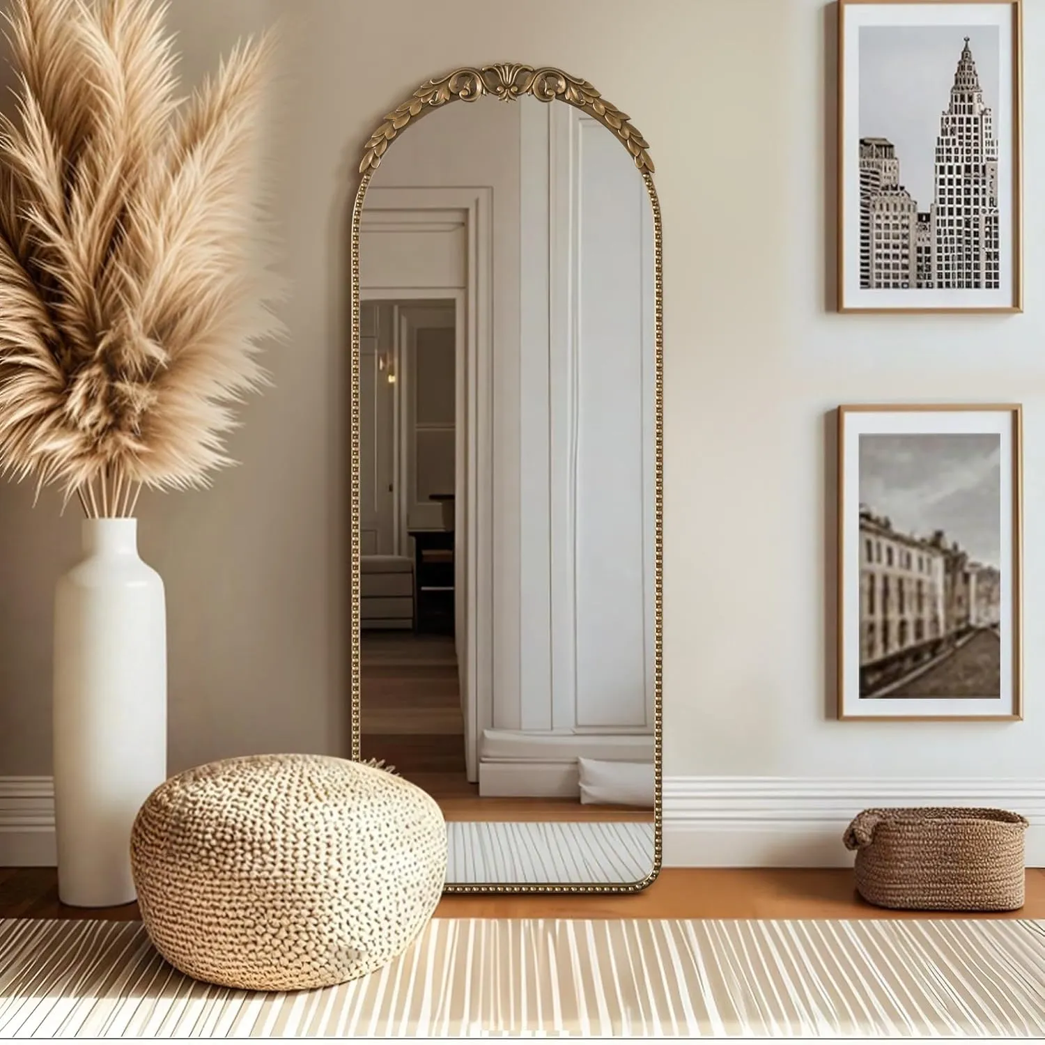 Gold Full Length Mirror Arched Decorative Floor Mirror