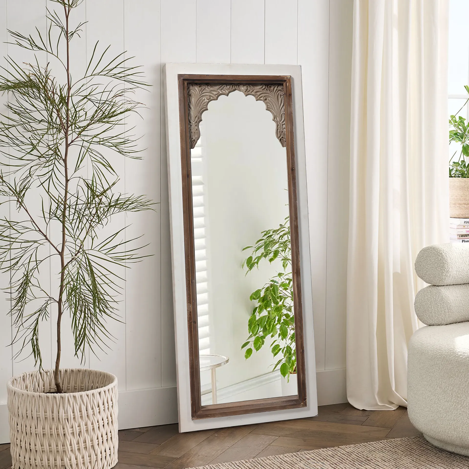 Handmade Custom Large Curved Wooden Framed Long Mirrors Bathroom Mirror Full Length Dressing Rustic Wood Floor Wall Mirror