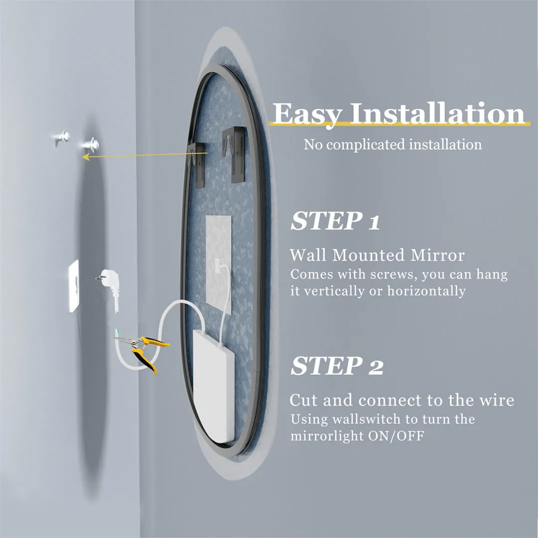 Large Round Bathroom Mirror with LED Lights - Shatterproof Glass for Small Bathroom Decor