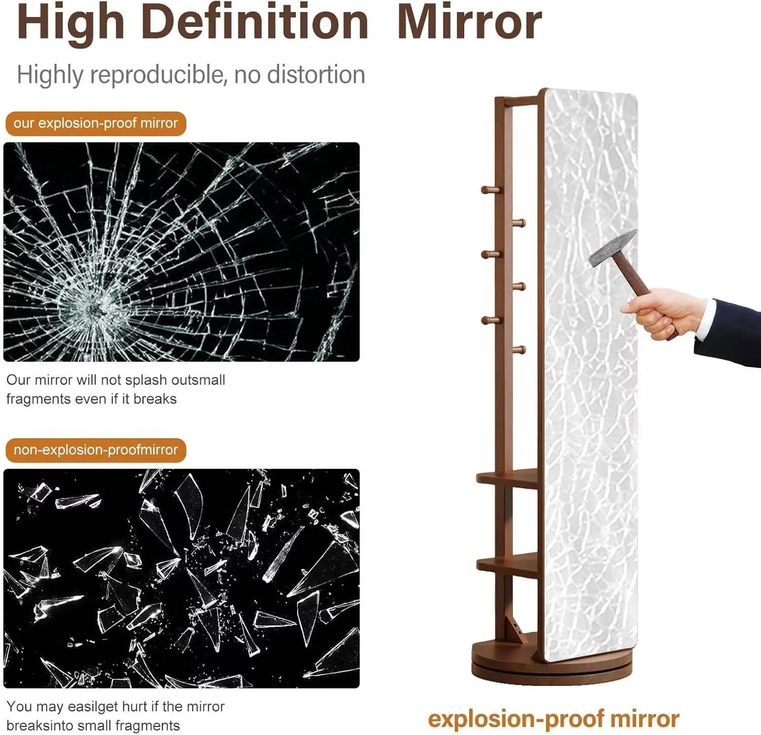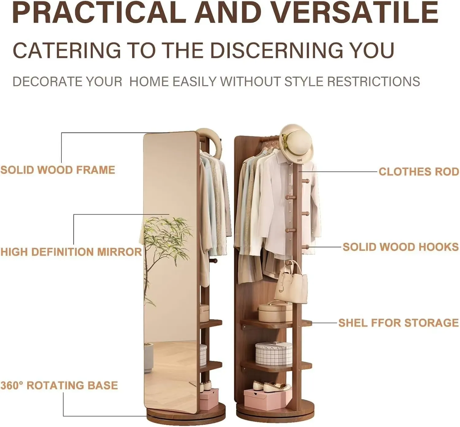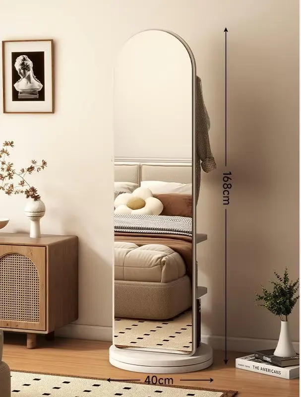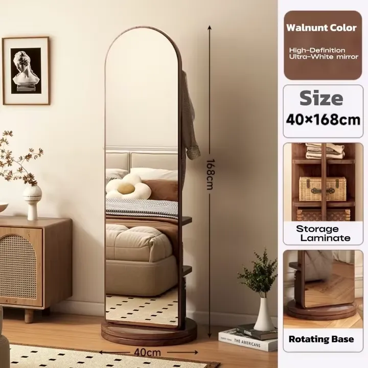 Luxury Handmade Glass Rotating Wooden Frame Floor Length Mirror Adjustable Eco-Friendly Design for Bedroom Dressing Room Storage