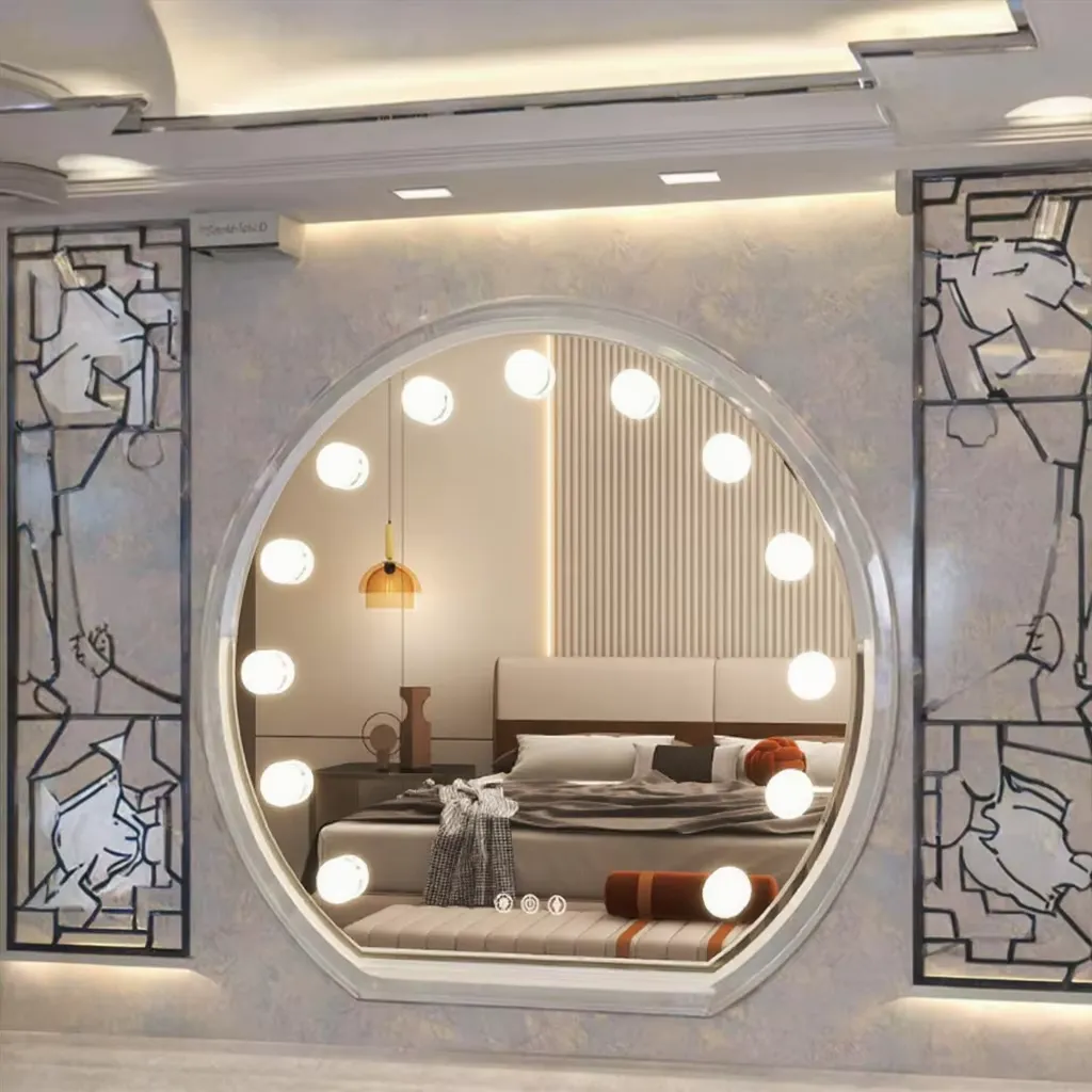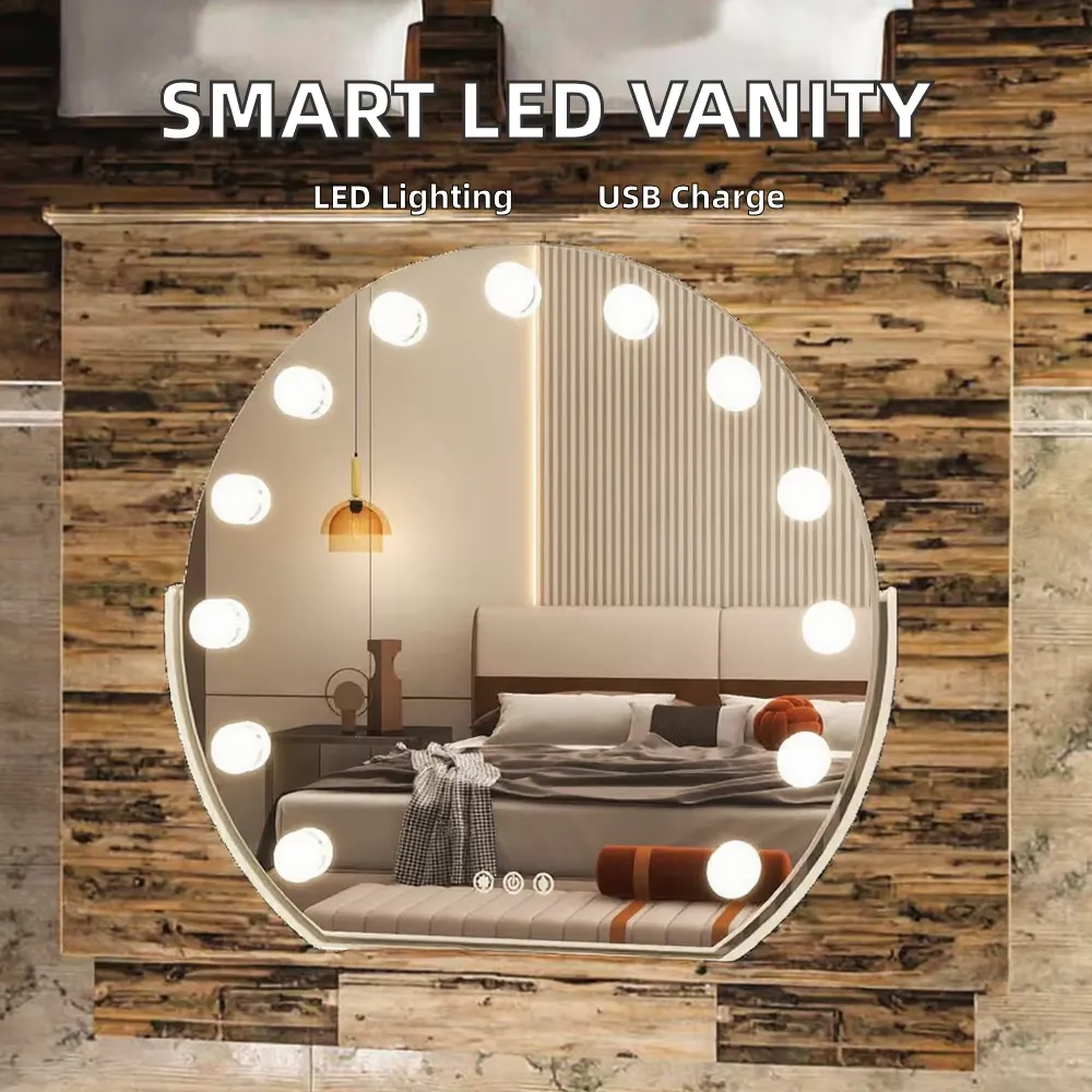 Glow up your daily routine with this Hollywood-style round vanity mirror—the ultimate blend of glam and function! Ringed with 10 bright, dimmable LED bulbs, it floods your space with soft, even light (no more harsh shadows for makeup, skincare, or selfies!). The sleek black frame + round design adds instant chic to bedrooms, dressing nooks, or any corner that needs a luxe upgrade. Sturdy base, easy-to-use controls, and a reflection that makes every angle look flawless—this isn’t just a mirror, it’s your new getting-ready sidekick. Elevate your vanity game (and your selfies) today!