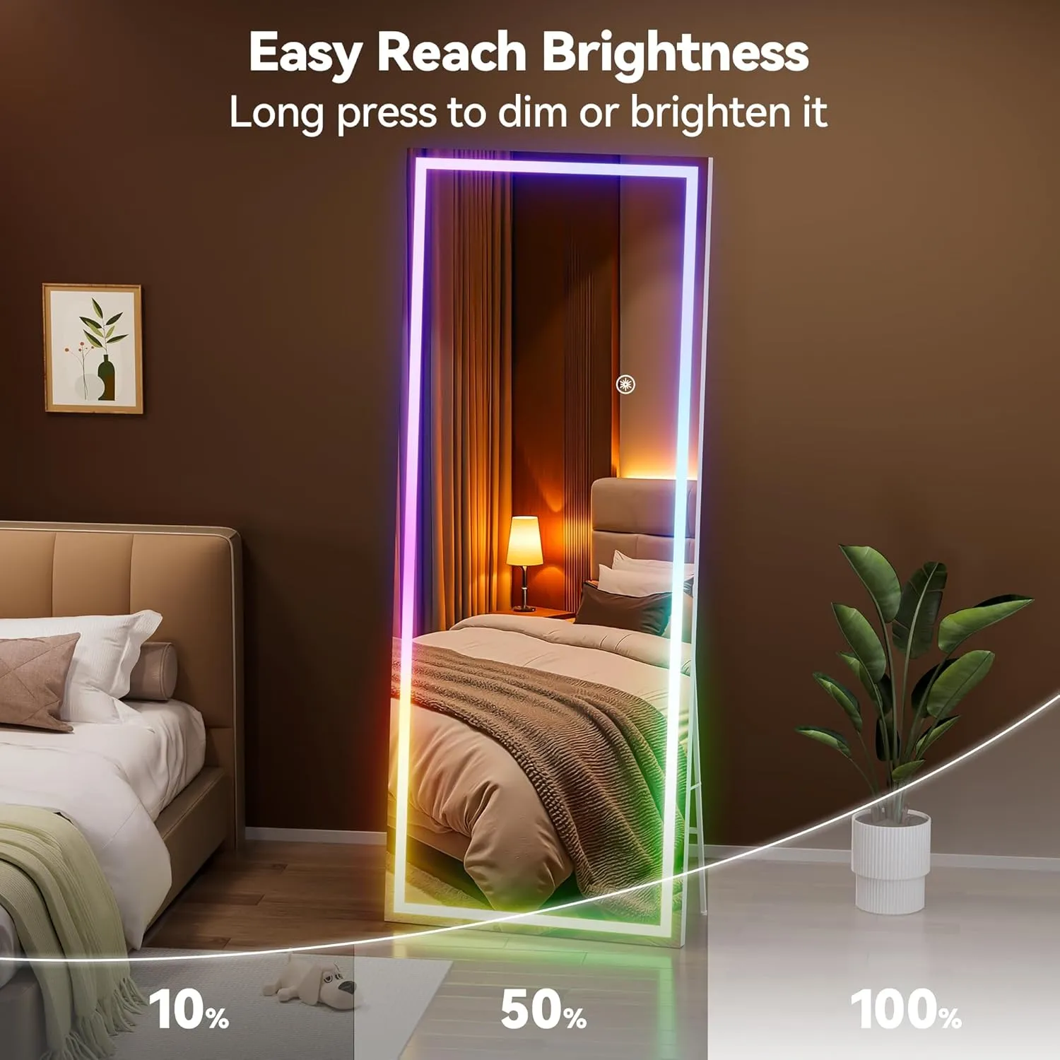 This 7-Color LED Lighted Full Length Mirror combines practicality with decorative appeal, ideal for bedrooms, living rooms, and dressing areas. It features 7 adjustable color modes (Pink/Red/Blue/White/Yellow/Green/Purple) to match different home styles or moods—from vibrant accent lighting to soft ambient glow.