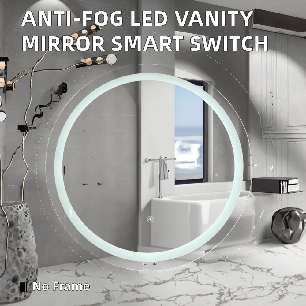 Premium Modern Circular LED Vanity Mirror Anti-Fog Touch Screen Smart Switch for Bathroom Salon Living Room Hotels Hospitals