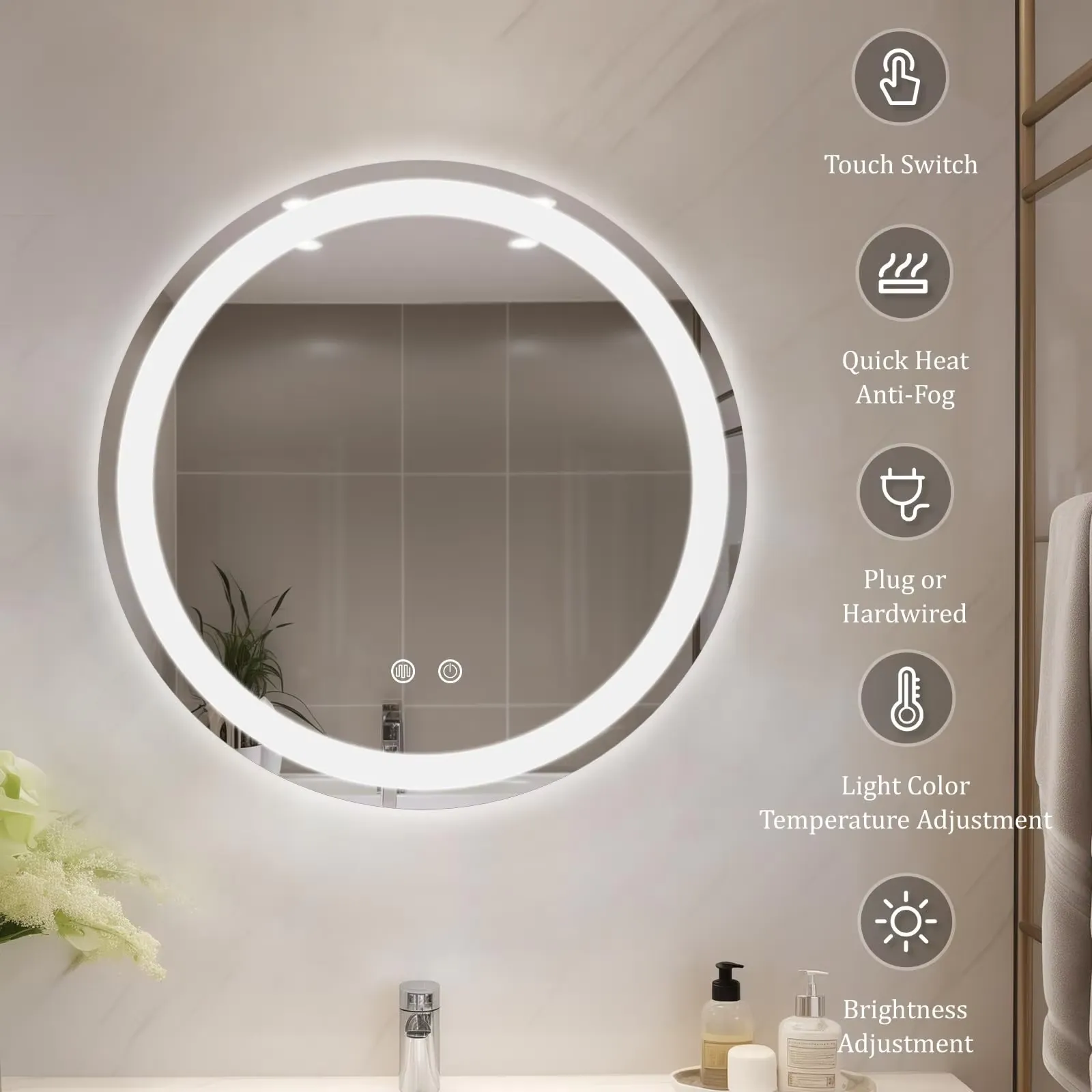 Large Round Bathroom Mirror with LED Lights - Shatterproof Glass for Small Bathroom Decor