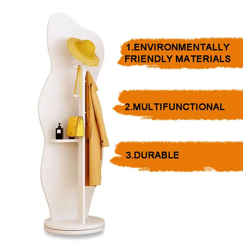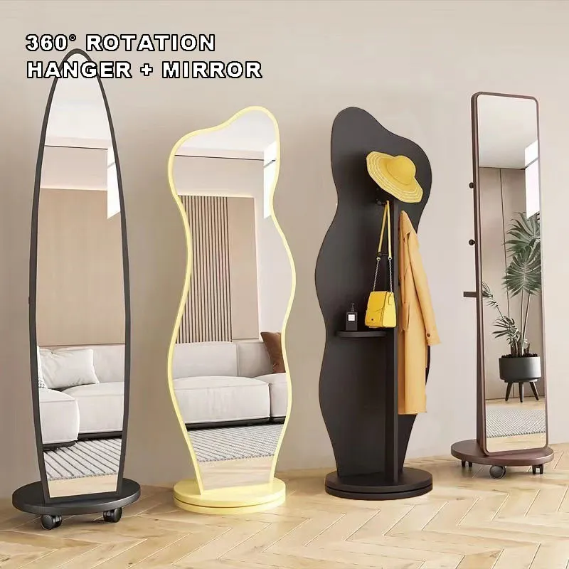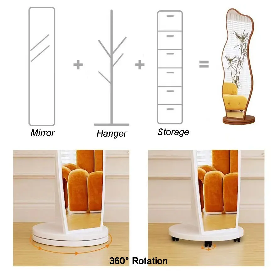 Rotation Full Length Mirror with Brake Wheels Solid Wood Floor Mirror with Coat Rack Full Body Mirror for Bedroom Living Room