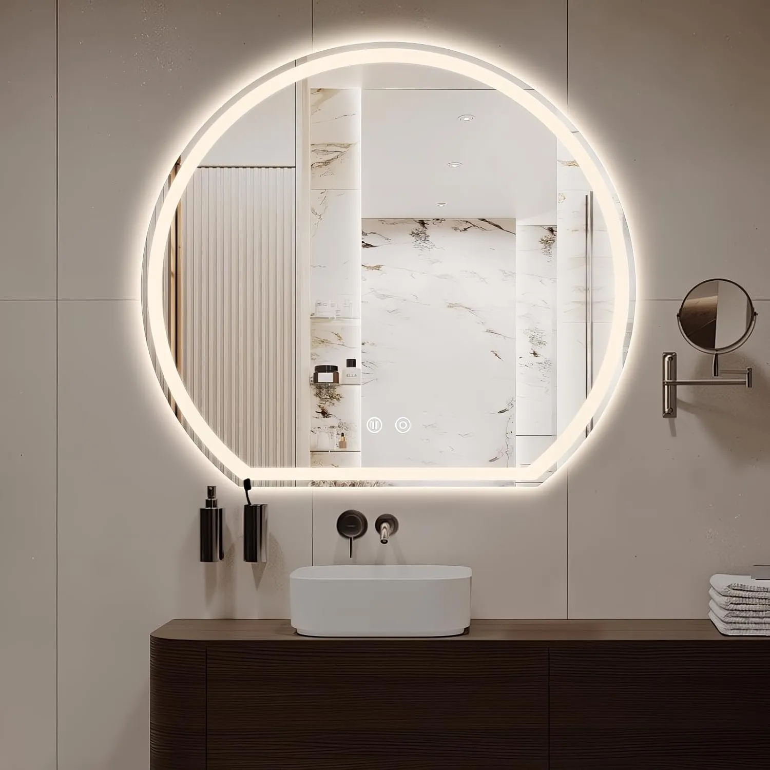 Large Round Bathroom Mirror with LED Lights - Shatterproof Glass for Small Bathroom Decor